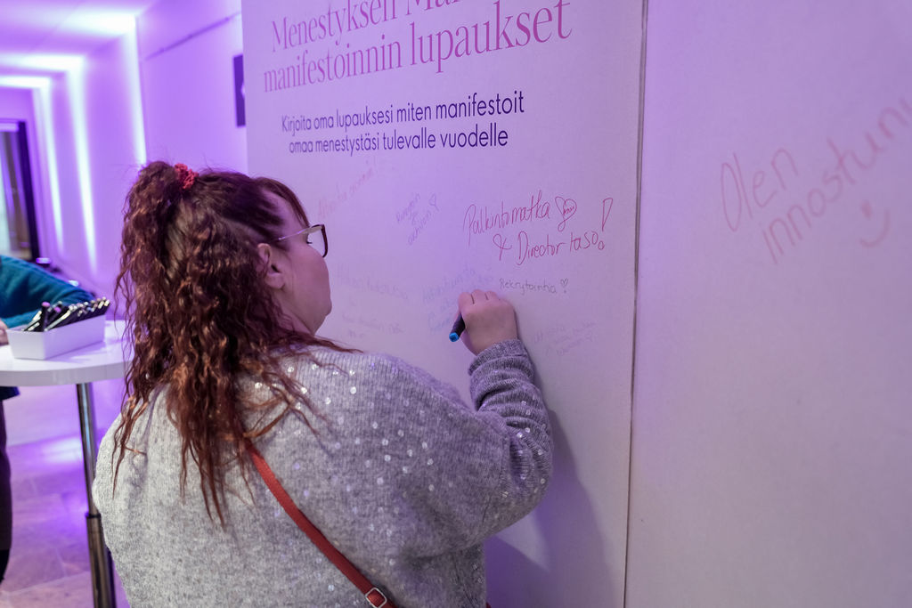 Vastasimme tavoitteeseen rakentamalla ohjelman, jossa teoria ja käytäntö kohtasivat: asiantuntijapuheenvuorot saivat jatkokseen osallistavia manifestointityöpajoja ja unelmakarttojen työstämistä. Keskiössä oli ajatus siitä, että menestys rakentuu asenteesta, uskosta ja rohkeudesta tavoitella enemmän: kun sisäinen varmuus kohtaa toiminnan, visiot alkavat muuttua todeksi.