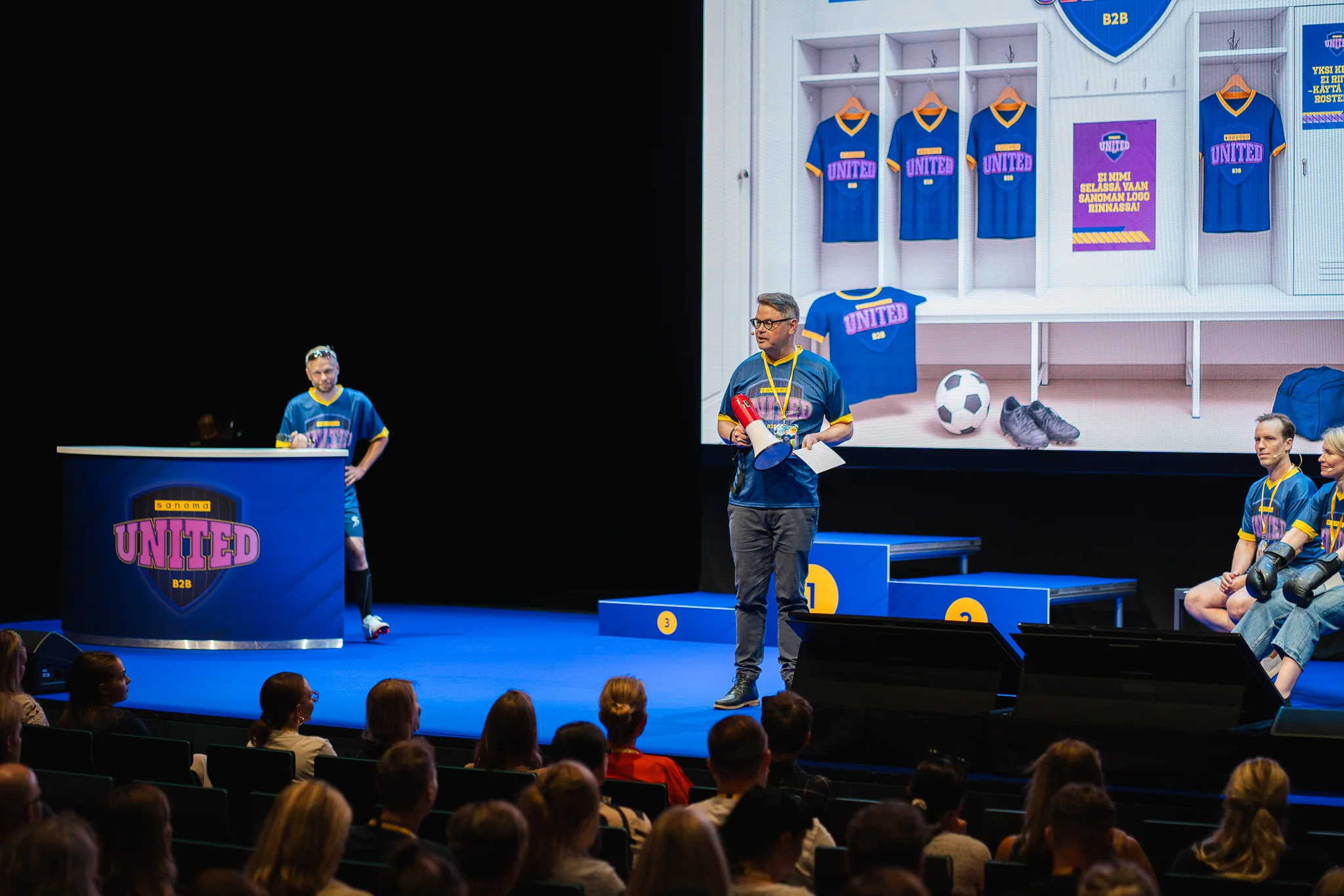 Ohjelma sai inspiraationsa peliteemaisesta ”Sanoma United” -konseptista, joka näkyi niin visuaalisessa ilmeessä, juonnoissa kuin osallistavissa elementeissäkin. Osallistujat toivotettiin tervetulleeksi sinistä mattoa pitkin cheerleadereiden kannustuksella, ja jokainen sai personoidut pelaajakortit omalla numerolla ja pelipaikalla. Energiset juontajat, vaikuttavat puheet sekä yhteiset aktivoinnit, vahvistivat pelifiilistä ja pitivät yleisön tiiviisti mukana läpi tapahtuman.